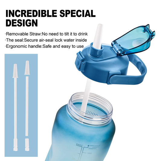 EYQ 64oz Leakproof Drinking Water Bottles, Half Gallon with Motivational Time Marker BPA Free for Fitness, Gym and Outdoor Sports (Navy/Green Gradient)