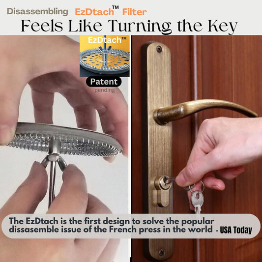 EzDtach French Press Coffee Maker with 2 Extra Screens, 34oz, French Press Stainless Steel 304 Grade, Easy Disassemble Design Double Filter, Thick Heat Resistant Glass Pot (Copper)