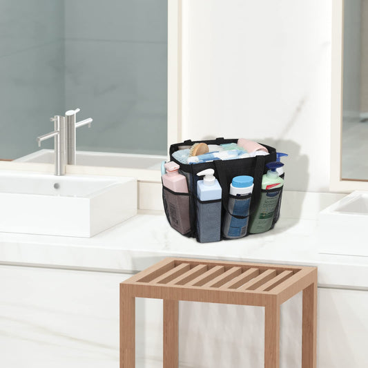 F-color Mesh Shower Caddy Portable, 8.3" Deeper Pockets Large Shower Caddy Bathroom Caddy for College Dorm Room Bathroom Essentials, 2 Handles Shower Bag Tote for Gym Rv, Camp with S Hook, Black
