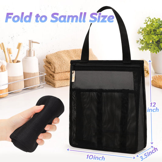 famichan Portable Mesh Shower Caddy, Gym Travel Camp Dorm Room Essentials for College Student Boy Girl, Bathroom Shower Bag - Black