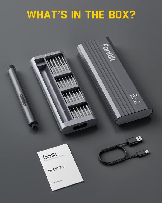 Fanttik E1 Pro 3.7V Mini Electric Screwdriver, Precision Screwdriver Set with LED Light, 24 Magnetic Bits, Max. 3 N.m, Magnetic Storage, 5/32''Hex, Repair Tool Set for Phone Camera Laptop Watch