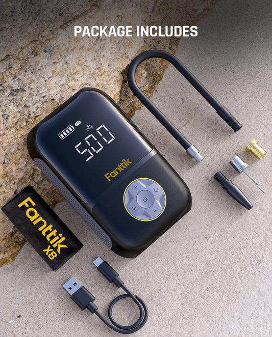 Fanttik X8 Portable Tire Inflator, Lightweight for Motorcycle tire, Cordless Air Compressor Pump, Rechargeable Battery, 150PSI with Digital Screen and LED for E-Bike, Bicycle, Car