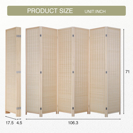 FDW Room Divider Bamboo Room Divider Wall Folding Privacy Wall Divider Wood Screen for Home Bedroom Living Room (6 Panel, Natural)