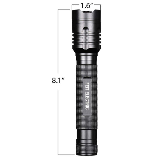 Feit Electric LED Tactical Flashlight - Aluminum Alloy - Zoomable Strike Bezel; Illuminate up to 1,000 feet - Adjustable Brightness from 260-1000 Lumen | Requires 3-C Batteries