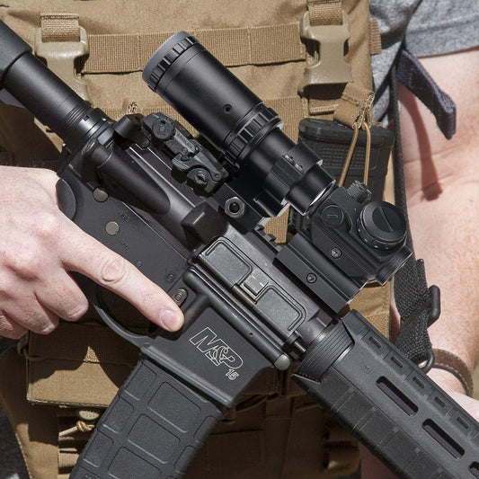 Feyachi M37 1.5X - 5X Red Dot Magnifier Focus Adjustment Optical Magnifier with Flip to Side Mount, Black
