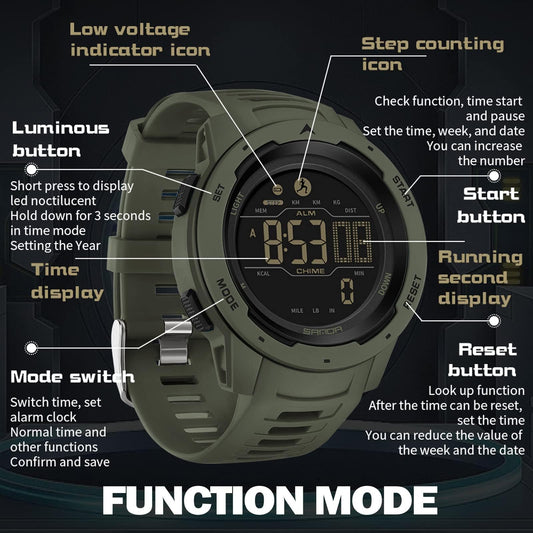 findtime Men's Digital Watch Waterproof Pedometer Watches Sport Watch Step Counter Calorie Military Watch with Stopwatch Alarm LED Backlight Countdown