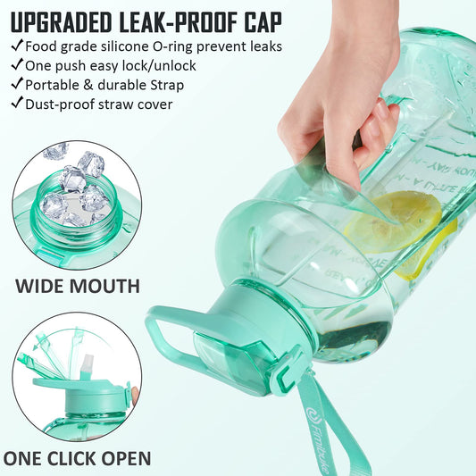 Fimibuke Half Gallon Water Bottle with Sleeve 64 OZ Water Bottle with Handle & Straw Leakproof Motivational Sports Gym Water Bottle with Time Marker Water Jug with Neoprene Holder - Floral Bloom