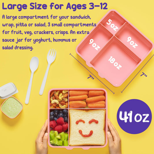 Fimibuke Kids Bento Lunch Box with 4 Compartments, Insulated lunch Bag, Stainless Steel Insulated Water Bottle, Ice Pack & Utensils Set, Birthday Gifts for Ages 3-12 Back to School Toddler Girls Boys