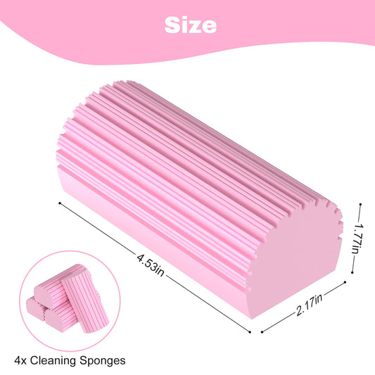Fikoksol 4pcs Damp Dusting Sponge Pink, Household Clean Sponges Duster for Cleaning Baseboards Blinds, Vents, Window Trunk, Scrub Magic Sponge Eraser Reusable Wet Sponges Cleaning Supplies Tool