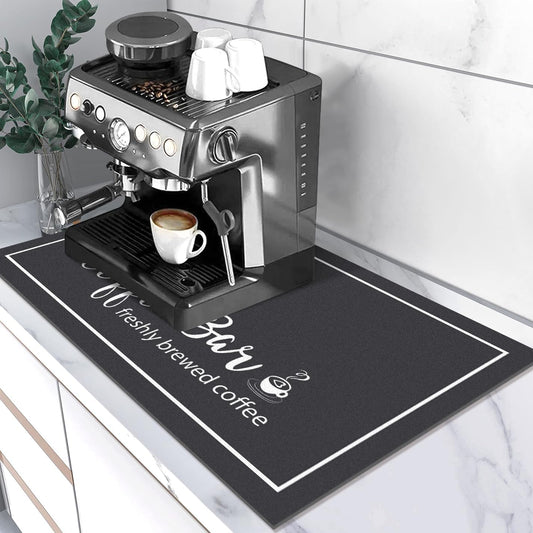 Findosom 12"x 20" Dish Drying Mat, Super Absorbent & Cuttable Coffee Mat, Hide Stain Bar Mat for Kitchen Counter, Coffee Bar Accessories, Black