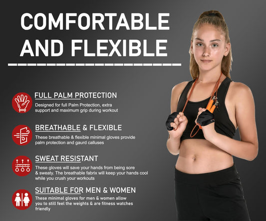FITNESS FORCE Workout Gloves for Men & Women Partial Weight Lifting Gloves Non-Slip Gym Gloves Lifting Grip Calluses Guard Fingerless Exercise Gloves with Full Palm Protection (Black, Medium)