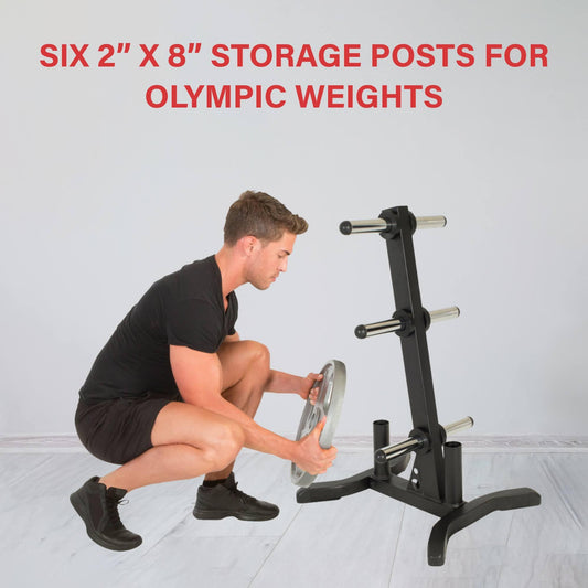 Fitness Reality X-Class Olympic Weight Tree - Heavy-Duty Bumper Plate Rack for Home Gym - Chrome Storage Posts - Includes 2 Barbell Holders - 1,000 Lb. Capacity