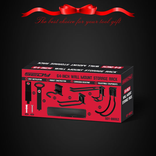 64" Heavy Duty Garage Storage Tool Organizer Wall Mount - Tool Rack with Adjustable Hooks, Anti-Rust, 300lbs Capacity - Easy Installation (4 Racks, 10 Hooks, 3 Straps)