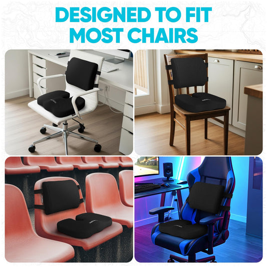 FORTEM Office Chair Cushion and Back Support for Office Chair, Lumbar Support Pillow, Memory Foam, Non Slip Sitting and Back Rest for Gaming, Car Seat Cushion, Chair Pad