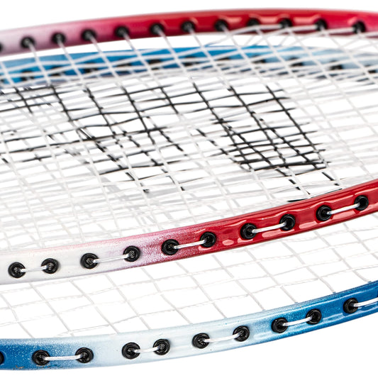 Franklin Sports Badminton Racket + Birdie Set - Replacement Badminton Equipment for Kids + Adults - 2 Player Badminton Racket Set, Red/ White/ Blue