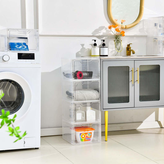 Freebat 6 Pack Closet Organizers and Storage,Clear Stackable Plastic Storage Bins with Lids Magnetic Doors,Clothes Organizers and Storage,Plastic Craft Containers for Wardrobe Kitchen Bathroom Office