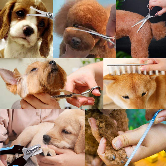 Freewindo Dog Grooming Scissors Kit, Safety Round Tip, Heavy Duty Stainless Steel Dog Scissors and Nail Clippers, 6 in 1 Dog Grooming Kit