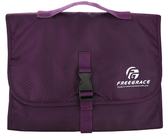 Freegrace Premium Hanging Toiletry Travel Bag - Cosmetic, Jewelry, Toiletry & Accessory Storage Organizer Bag, Large Size, Various Compartments (Purple)