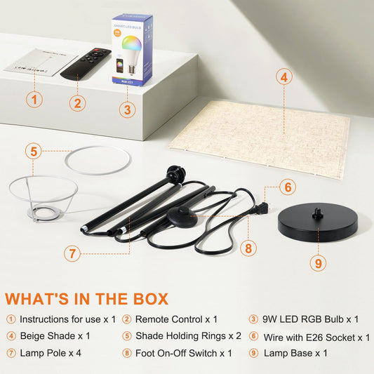 FRIDEKO HOME Floor Lamps for Living Room, Dimmable 3 Colors Temperature, Modern Corner Floor Lamp with Remote, Tall Standing Lamps for Kid Room Bedroom, Foot Switch, Beige Shade, 9W RGB LED Bulb