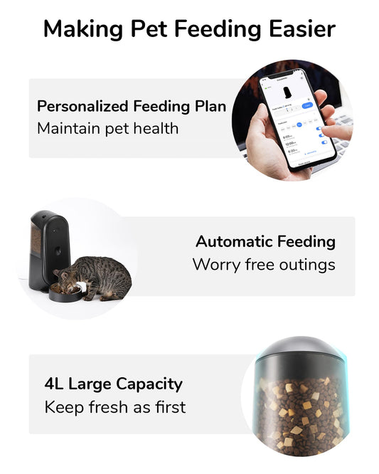 FUKUMARU Automatic Cat Feeder, 4L Dog Feeders with Double Bowls, Support DIY Meals and Timed Control WiFi Cat sFood Dispenser, Suit for Most Pet Food