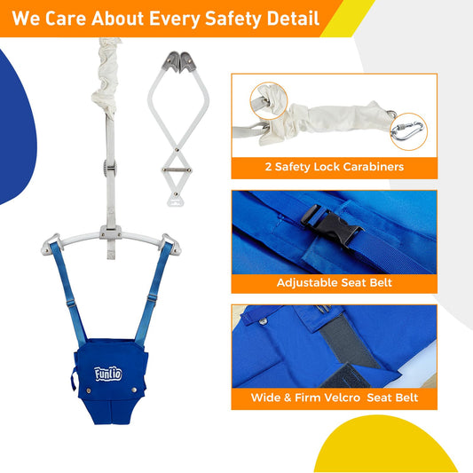 FUNLIO Baby Door Jumper for 6-24 Months (with Door Clamp), Baby Jumper Doorway with Strong Spring & Adjustable Strap, Portable Infant Baby Bouncer, Easy to Assemble, Bearing 40 Lbs, CPC & CE Certified