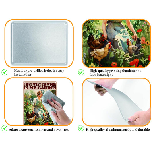 Funny Chicken Signs I Just Want To Work In My Garden Outdoor And Hang Out With My Chickens Tin Sign for Home Farm Chicken Coop Farmhouse Kicthen Garden Decor 8 X 12 Inch