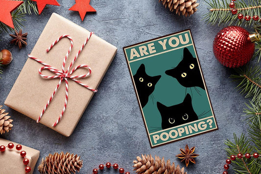Funny Black Cat Wall Art - "Are You Pooping?" Vintage Bathroom Decor Poster - Retro Gothic Home Decor for Apartment or House, 8 x 12 Inch (918)