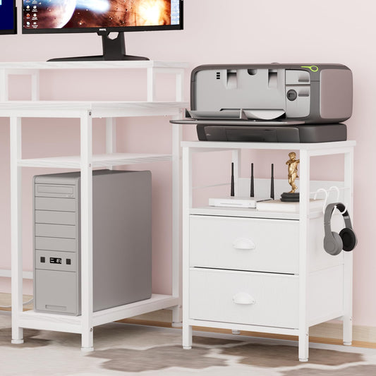 Furologee Nightstands Set of 2, End Table with 2 Fabric Drawers, Night Stand with 2 Hooks, Open Wood Shelf Bedside Table for Bedroom/Living Room/White