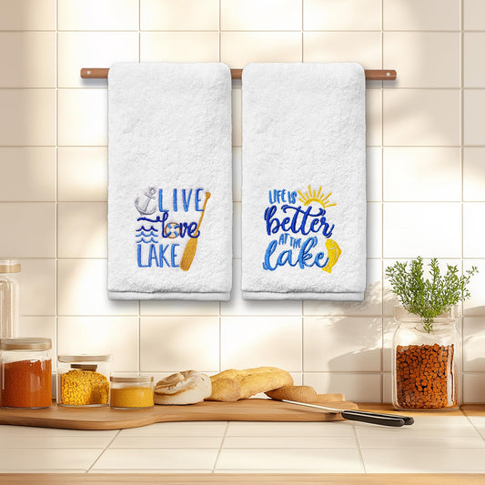 FUTBU Lake Hand Towels for Bathroom Set of 2, Embroidered House Gifts Decor, Life Decorative New Home Tea Towels, 100% Cotton Soft Kitchen Towels 14x30 Inches