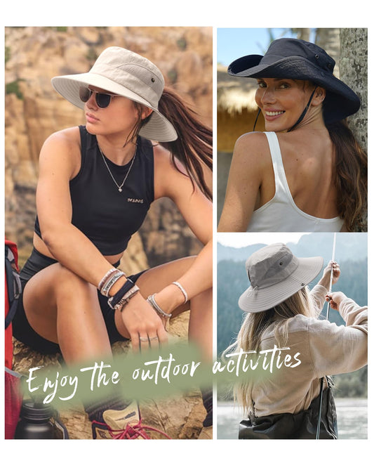 FURTALK Womens Sun Hat Beach Summer Wide Brim UPF 50+ Outdoor Protection Foldable Lightweight Ponytail Bucket Hat Dark Grey, One Size