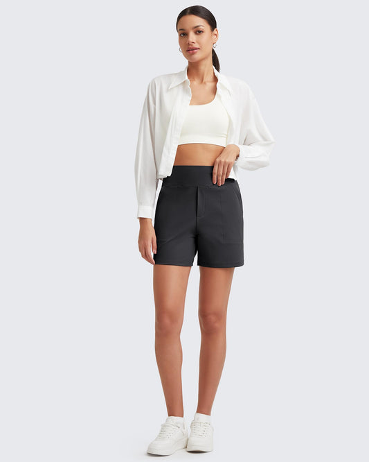 G4Free Athletic Shorts for Women 5'' High Waisted Yoga Running Shorts Dressy Summer Casual Shorts with Pockets Stretch (Black,M,5")