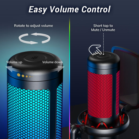Gaming USB Microphone Set for PC, TONOR RGB Condenser Mic with Boom Arm Quick Mute, RGB Lighting, Pop Filter, Shock Mount, Gain Control for Streaming Podcasting Recording Discord Twitch YouTube TC310+