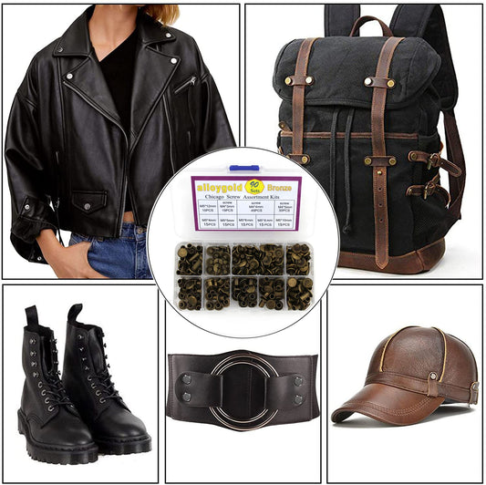 90 Sets Bronze Chicago Screws Leather Assorted Kit ,6 Sizes of Screw Rivets for Leather Rivet for DIY Leather Craft and Bookbinding (M5 X 4, 5, 6, 8, 10, 12)