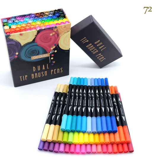GC 72 Colors Dual Tip Brush Pens Highlighter 72 Art Markers 0.4mm Fine liners & Brush Tip Watercolor Pen Set for Adult and kids Coloring Books, Calligraphy, Hand Lettering, Note Taking