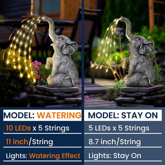 GIGALUMI Solar Garden Decor Upgraded Elephant Statues Outdoor, Birthday Gifts for Women Mom Grandma Senior Elder, Elephant Ornament for Balcony, Garden, Patio, Yard, Lawn (Twinkling Lights Only)