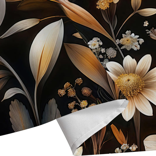 GOAOK Retro Rustic Floral Shower Curtain Boho Black and Gold Bathroom Decor, Vintage Dark Flowers Wildflower Plant Farmhouse Shower Curtain with Hooks Cute Aesthetic Bathroom Accessories Set, 72X72