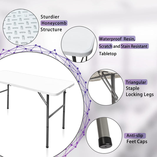 Gocamptoo Folding Table,4ft Indoor Outdoor Heavy Duty Portable Folding Square Plastic Dining Table w/Handle, Lock for Picnic, Party, Camping (4 FT) …