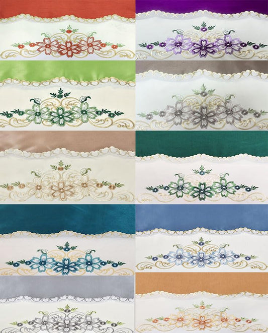 GOHD Arch Floral Kitchen Curtain Set/Swag Valance & Tier Set. Nice Matching Color Floral Embroidery on Border with cutworks (Purple)