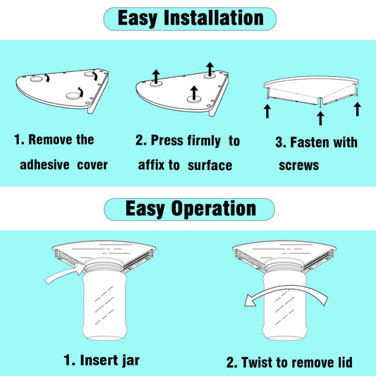 GOLDTREE Latest Stainless Steel Jar Openers for Seniors, Under Cabinet Jar Opener Tool for Weak Hands, Under Counter Jar Lid Cap Opener, Easy Grip