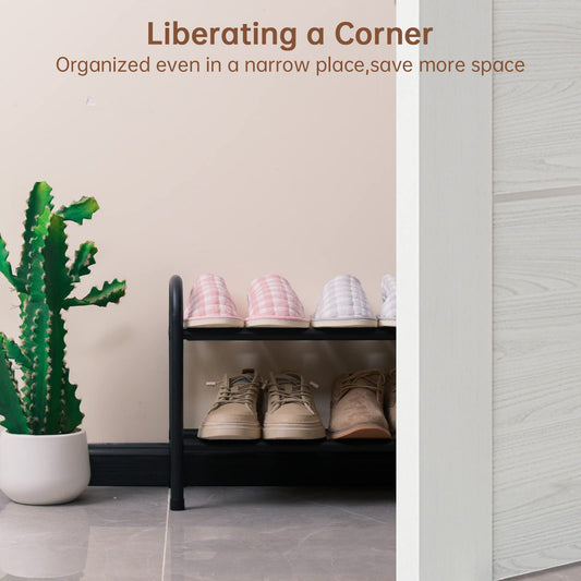Gonfoam 2-Tier Expandable Shoe Rack,Adjustable Shoe Shelf Storage Organizer Heavy Duty Metal Free Standing Shoe Rack for Entryway Closet Doorway (Black)