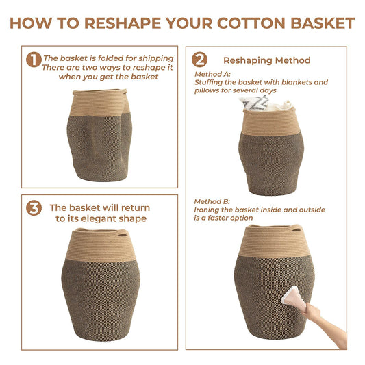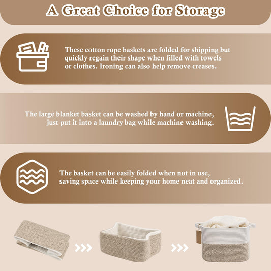 Goodpick Woven Storage Basket, Cotton Rope Basket for Dog Toys, Books, Stylish Gift Basket with Handles, 13 x 10 x 9 Inches Square Baskets for Organizing, Brown and White