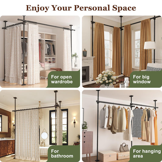 Goovilla Room Divider for Room Separation, Tension Curtain Rods No Drilling, 4-10ft(H) 28-114inch(W) Adjustable Temporary Privacy Wall Divider, Heavy Duty Freestanding Space Partition Separator, Black