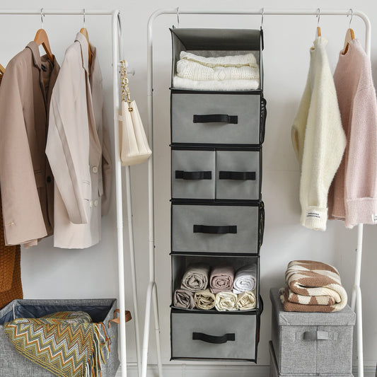 GRANNY SAYS Hanging Closet Organizer 6 Shelves, Closet Organizers and Storage with 5 Drawers, 6 Side Pockets Closet Hanging Organizer, Hanging Storage Organizer for Closet, Baby Clothes, Gray