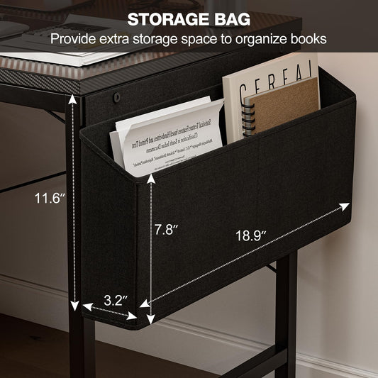 Grandder Gaming Desk 40 Inch with Power Outlet and LED Light, Computer Desk with Reversible Shelves and Storage Drawer, Pc Small Desk for Home Office Table with Bag, Carbon Fiber Black