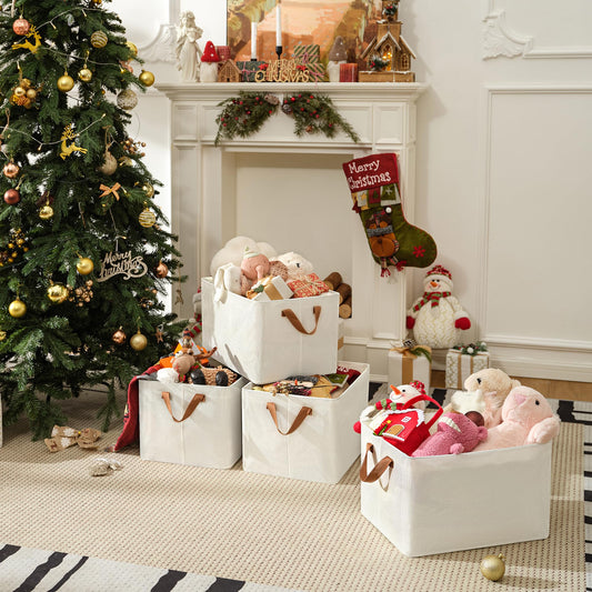 GRANNY SAYS Closet Storage Baskets, Collapsible Fabric Storage Bins with Metal Frame, Clothes Organizer Bins, Extra Large Baskets for Shelves, Ivory, 4-Pack