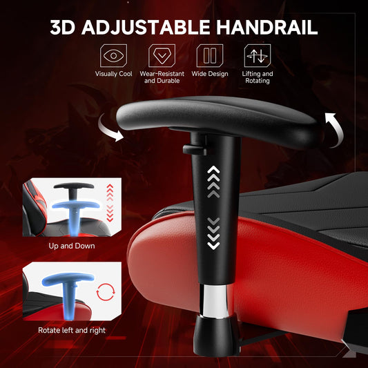 GTRACING Gaming Chair with Reclining Backrest, Adjustable Height and Swivel Base, Ergonomic Computer Chair with Headrest and Lumbar Support (Red)