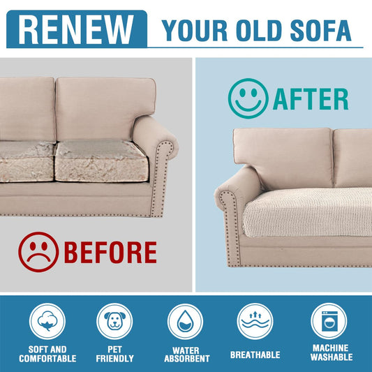 H.VERSAILTEX Super Stretch Individual Seat Cushion Cover Sofa Covers Couch Cushion Covers Slipcover Sets Thick Jacquard Textured Twill Fabric (3 Piece Sofa Cushion Covers, Ivory)