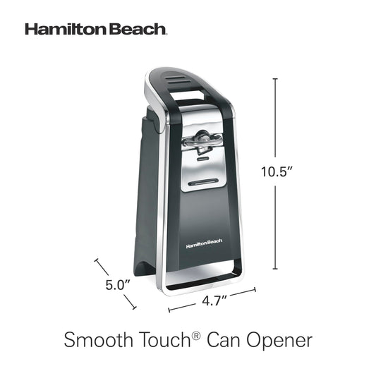 Hamilton Beach Smooth Touch Electric Automatic Can Opener with Easy Push Down Lever, Eliminates Sharp Edges, Opens All Standard-Size and Pop-Top Cans, Extra Tall, Black and Chrome (76606AG)