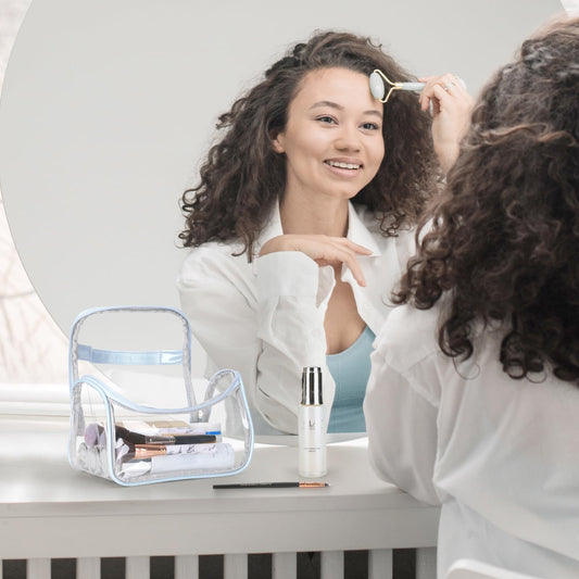 HAOGUAGUA Heavy Duty Clear Cosmetic Bag Waterproof Transparent Travel Makeup Toiletry Organizer Bag (Blue-1pcs)