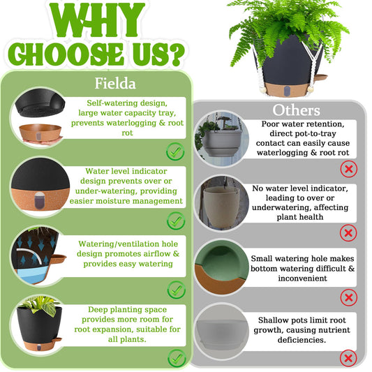 Hanging Planter Self Watering 8 Inch, 2 Pack Hanging Baskets for Plants, Hanging Flower Pots with Drainage Hole & 2 Kinds of Plant Hangers for Garden Home Decor (Black, 8 inch)